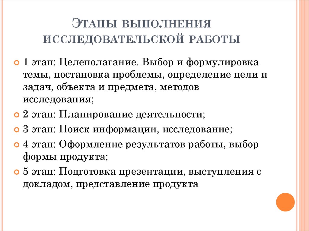 ЭТАПЫ ВЫПОЛНЕНИЯИССЛЕДОВАТЕЛЬСКОЙ РАБОТЫ