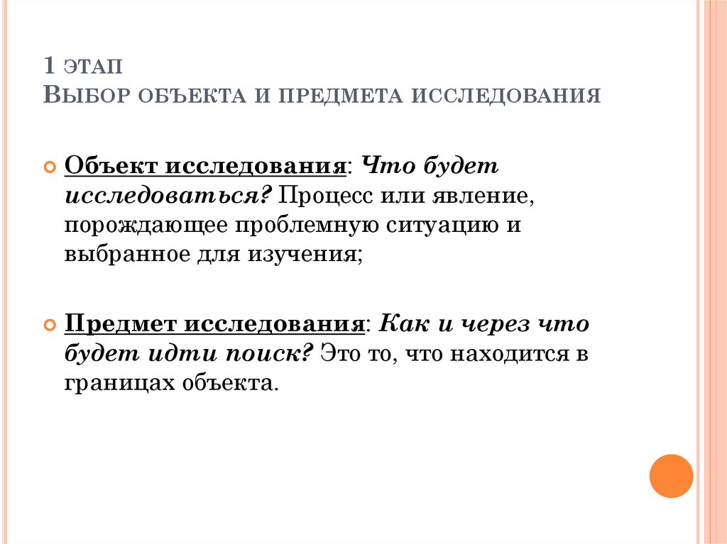 1 ЭТАПВЫБОР ОБЪЕКТА И ПРЕДМЕТА