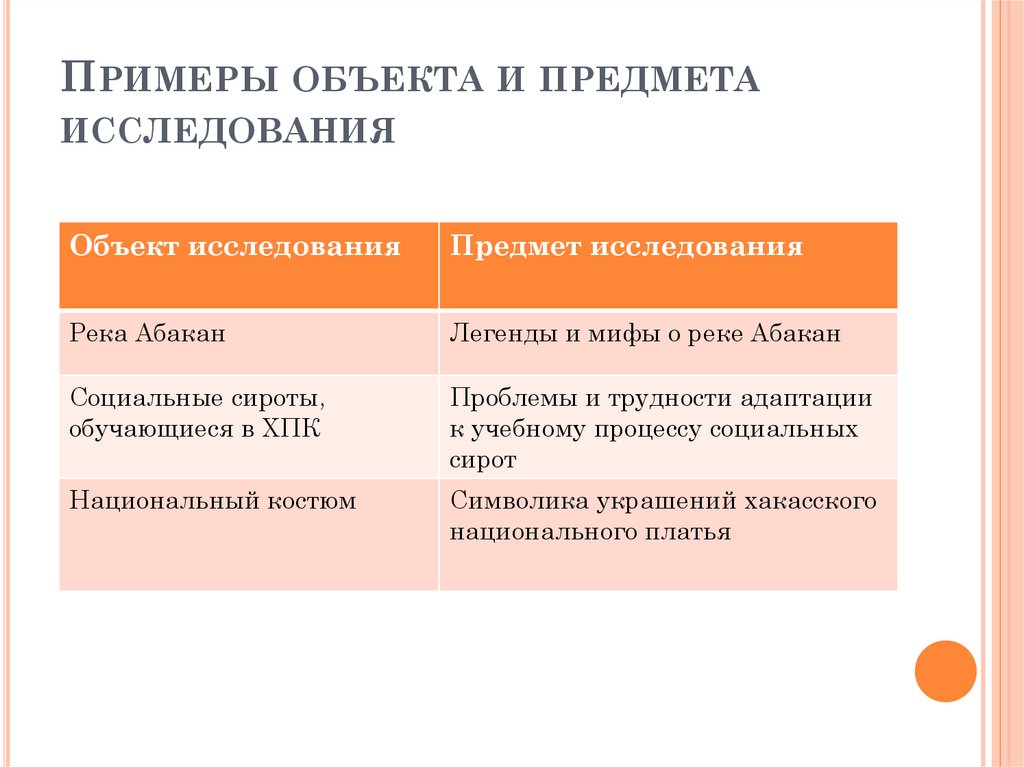 ПРИМЕРЫ ОБЪЕКТА И ПРЕДМЕТАИССЛЕДОВАНИЯ