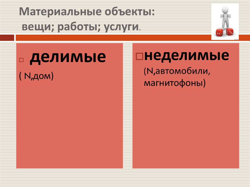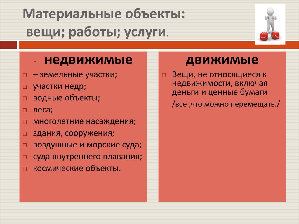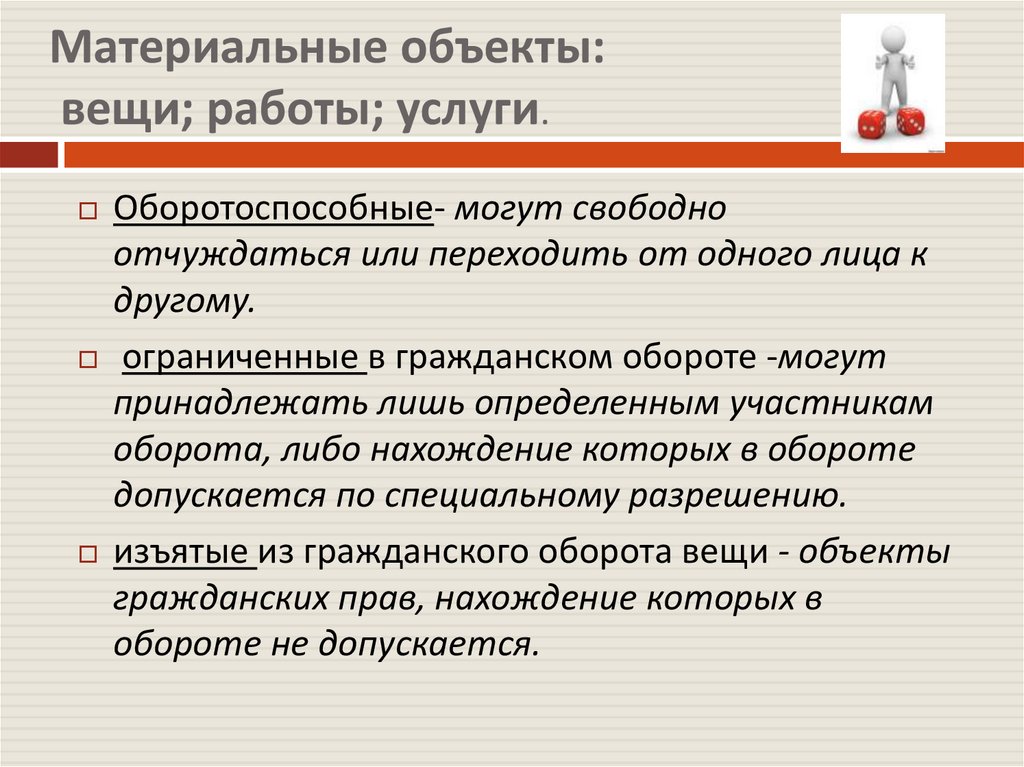 Материальные объекты:вещи; работы; услуги.