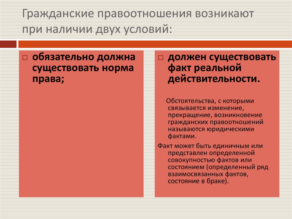 Гражданские правоотношения возникаютпри наличии двух условий: