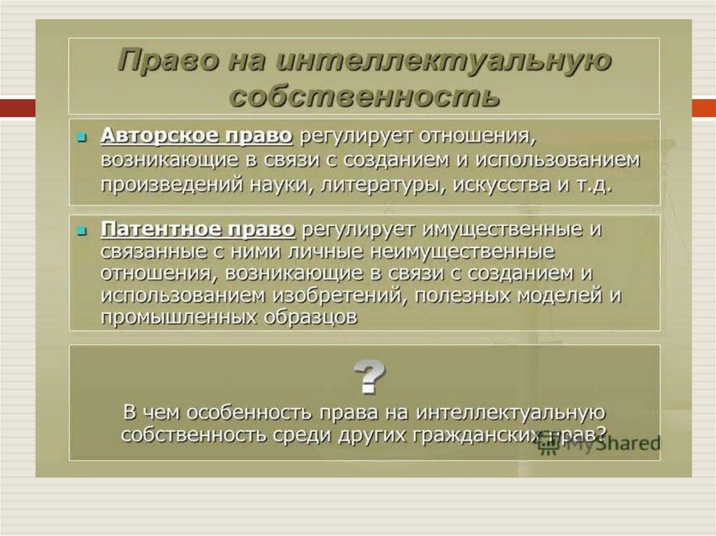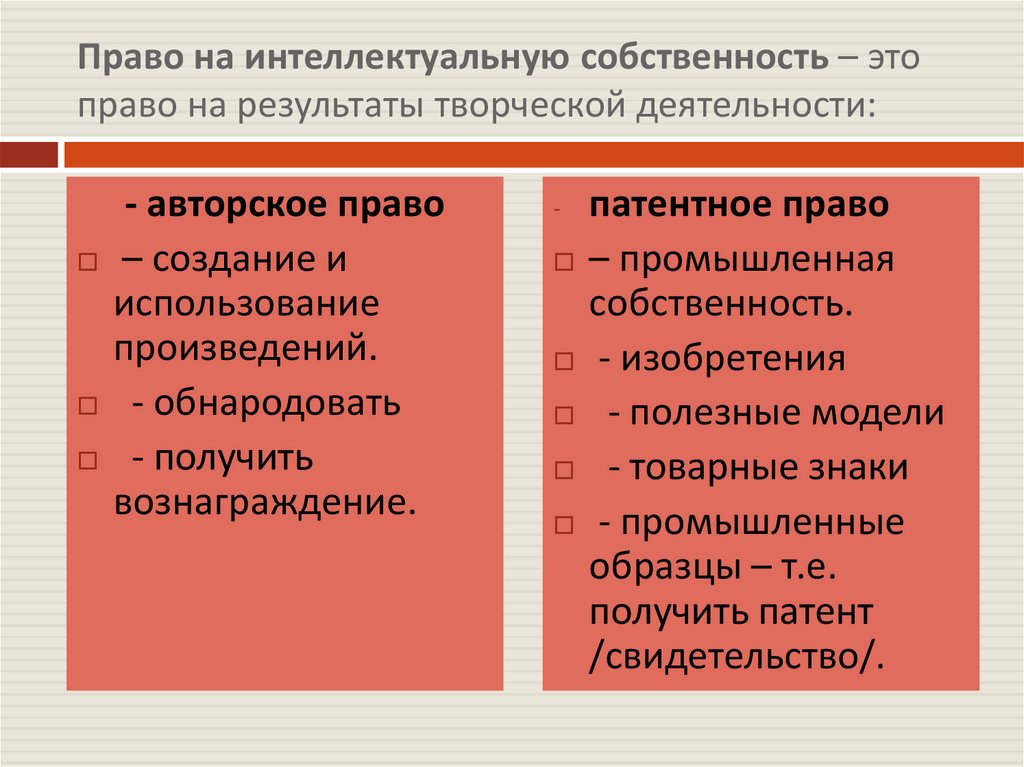 Право на интеллектуальную собственность – этоправо на результаты творческой деятельности: