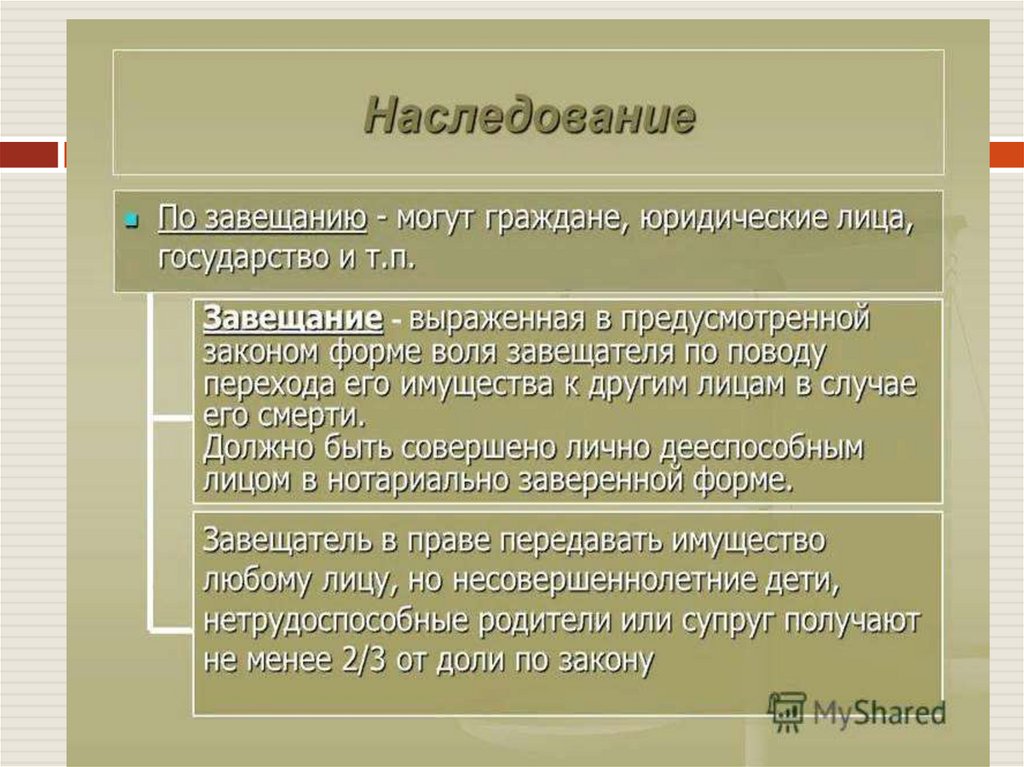 Имущественные права – право :- владения – иметь, быть хозяином