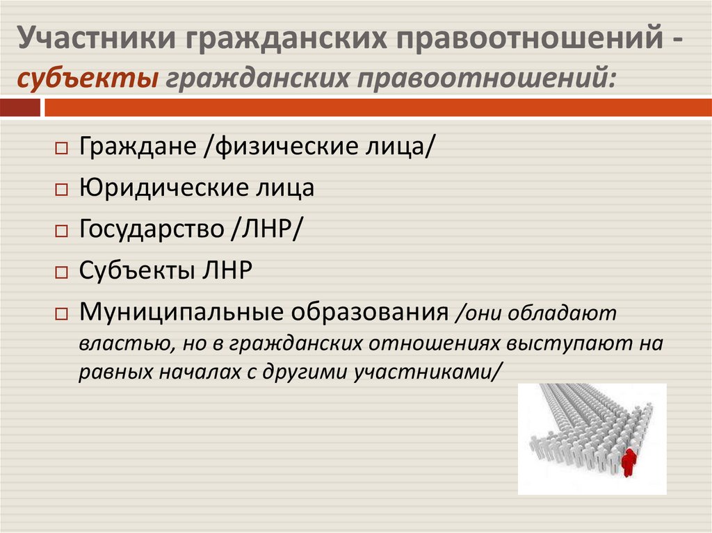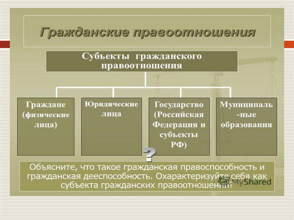 Участники гражданских правоотношений субъекты гражданских правоотношений:Граждане /физические лица/