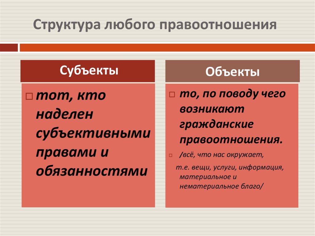 Структура любого правоотношенияСубъекты