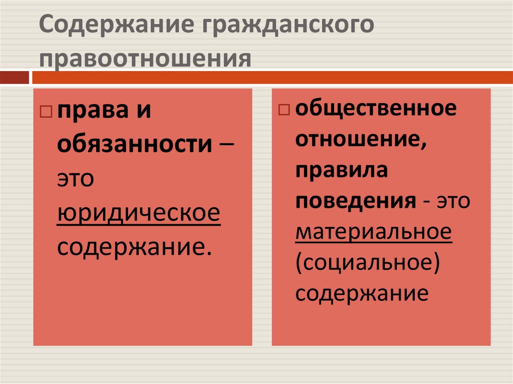 Содержание гражданскогоправоотношения