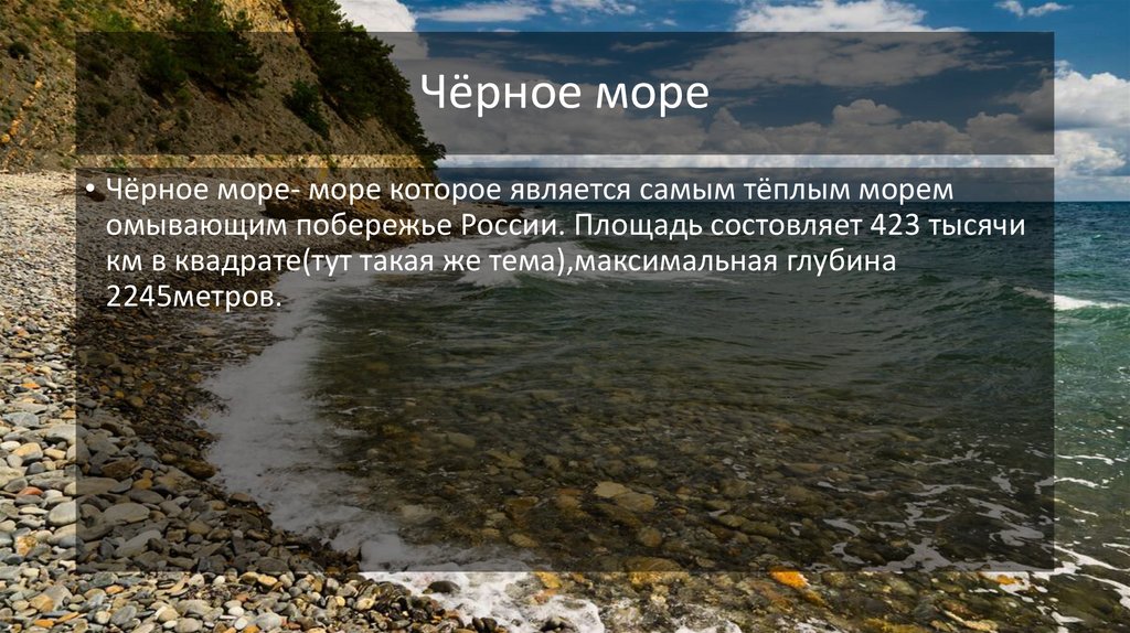 Чёрное море• Чёрное море- море которое является самым тёплым морем