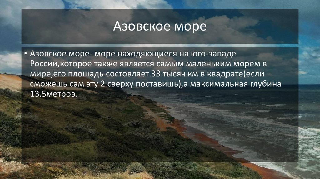 Азовское море• Азовское море- море находяющиеся на юго-западе