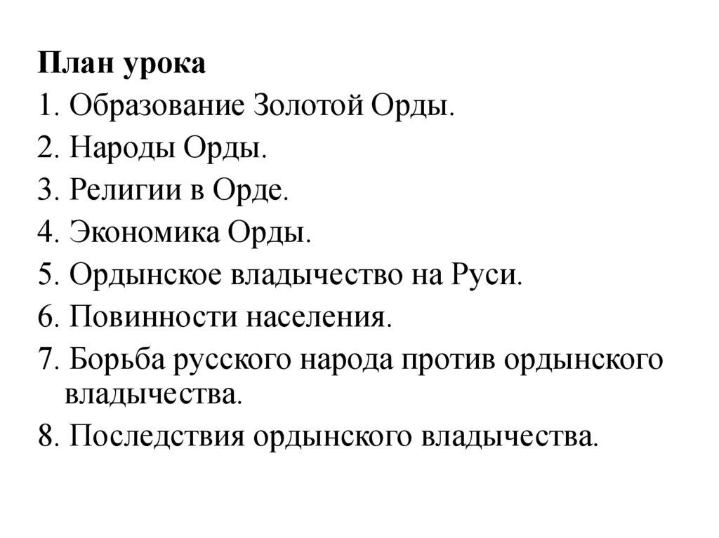 План урока1. Образование Золотой Орды.