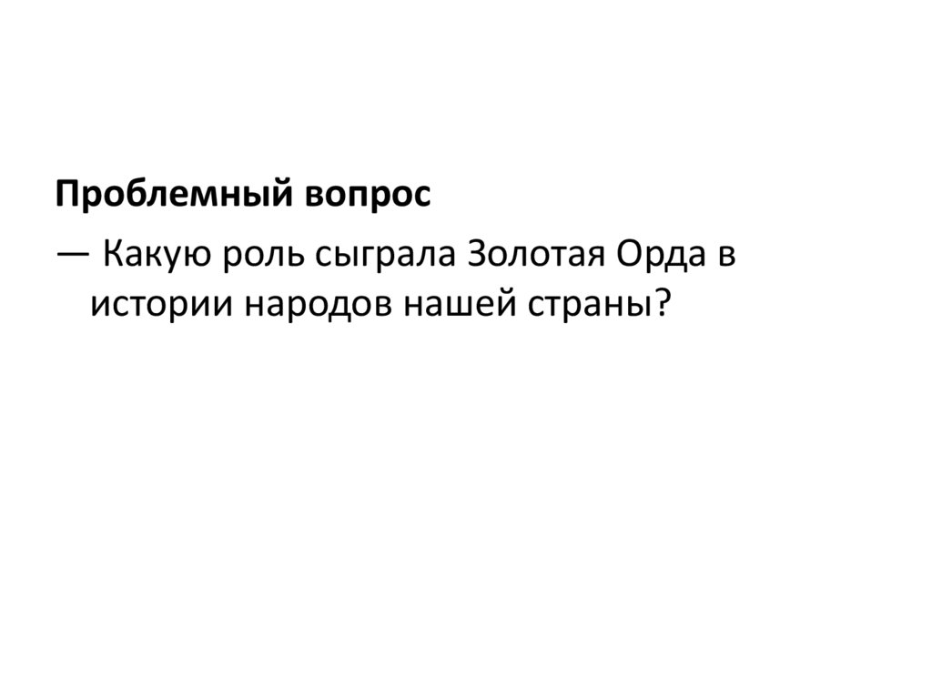 Проблемный вопрос— Какую роль сыграла Золотая Орда в