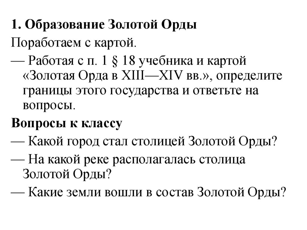 1. Образование Золотой ОрдыПоработаем с картой.