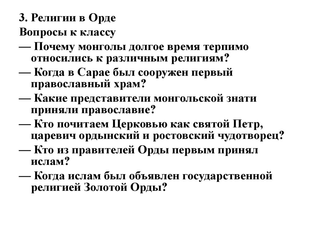 3. Религии в Орде.