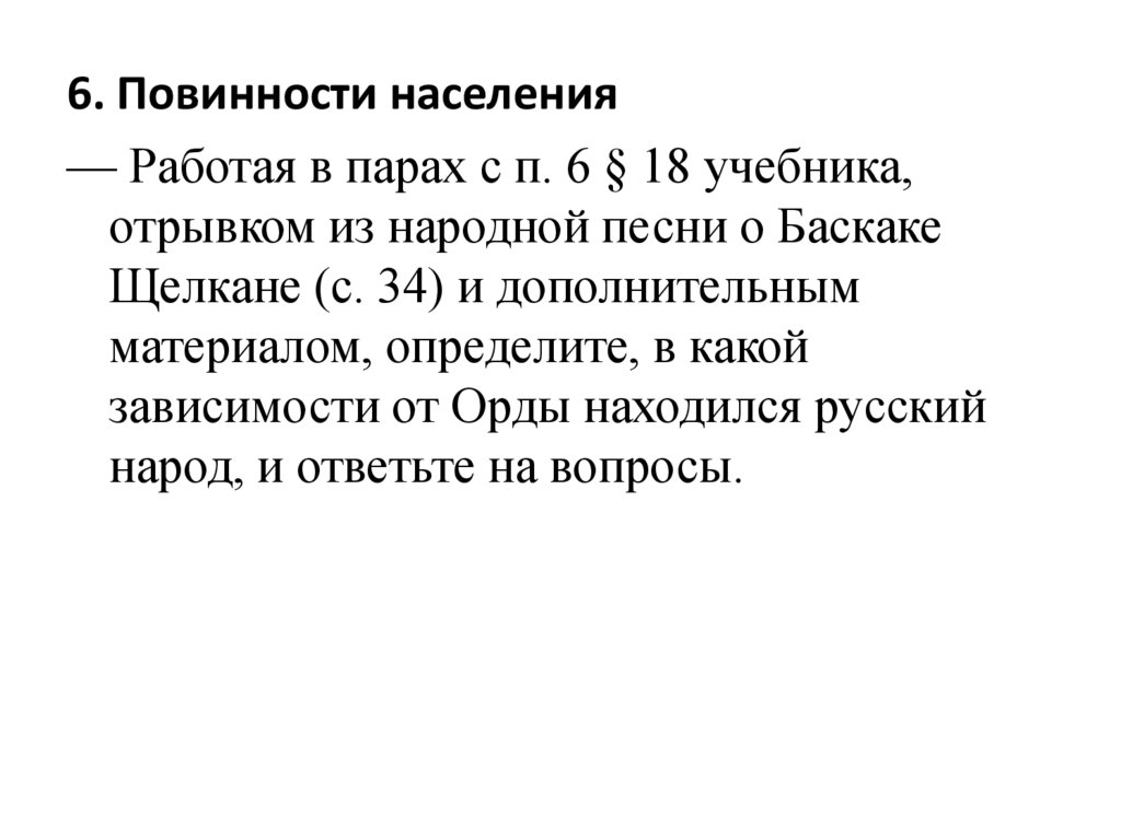 6. Повинности населения— Работая в парах с п. 6 § 18 учебника,