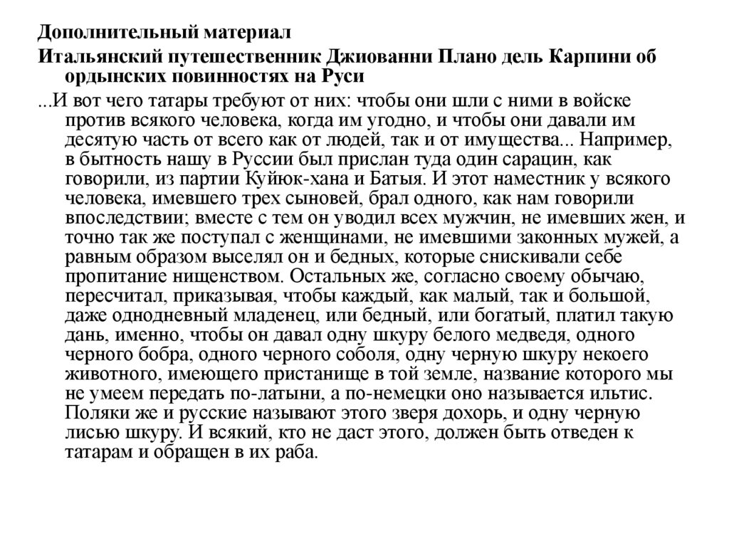 Дополнительный материалИтальянский путешественник Джиованни Плано дель Карпини об