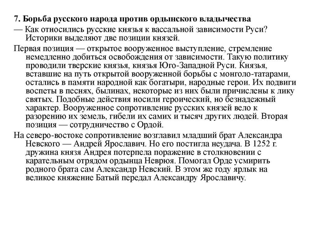 7. Борьба русского народа против ордынского владычества— Как относились русские князья к вассальной зависимости Руси?