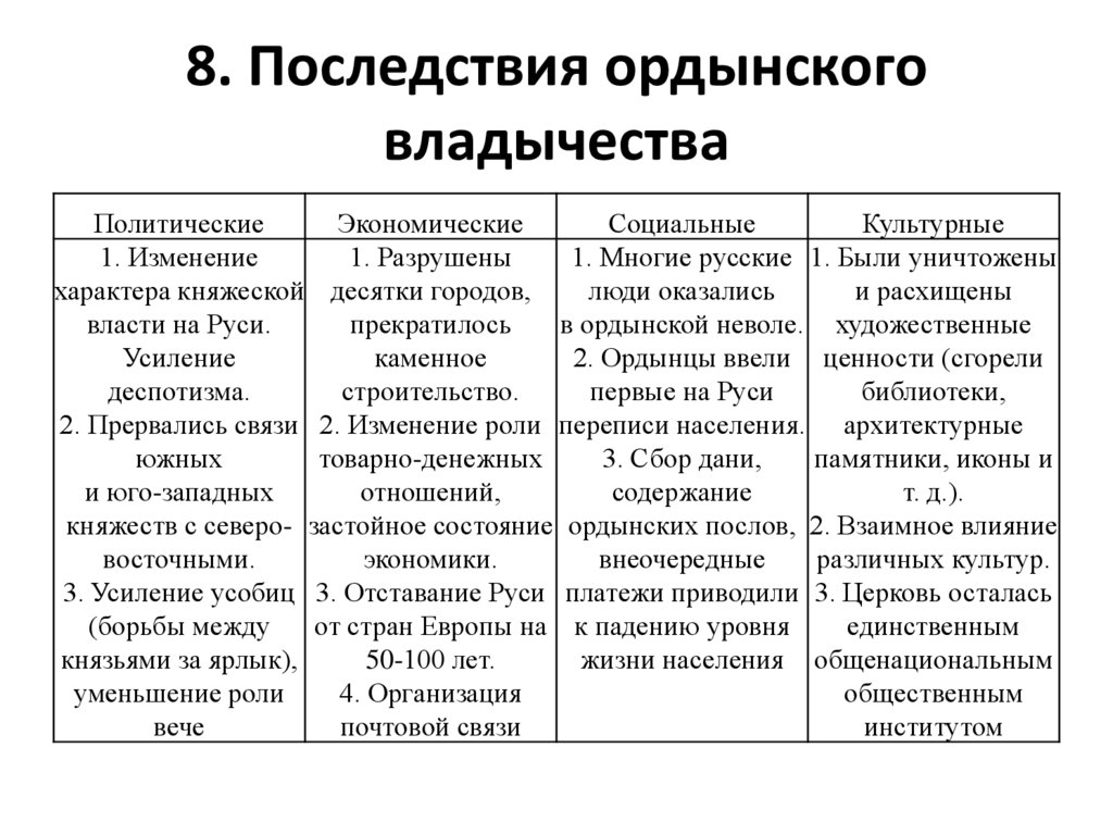 8. Последствия ордынскоговладычества