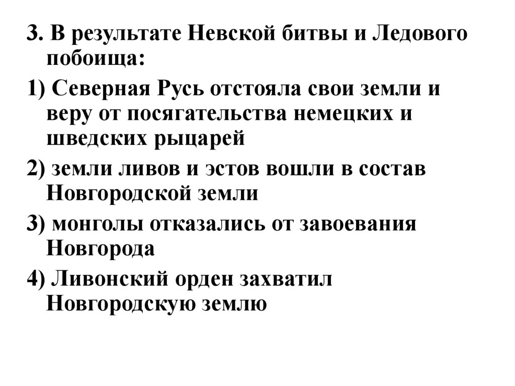3. В результате Невской битвы и Ледовогопобоища: