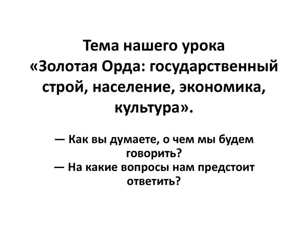Тема нашего урока«Золотая Орда: государственный