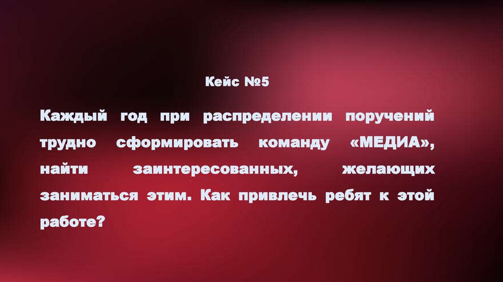 Кейс №5Каждый год при распределении поручений