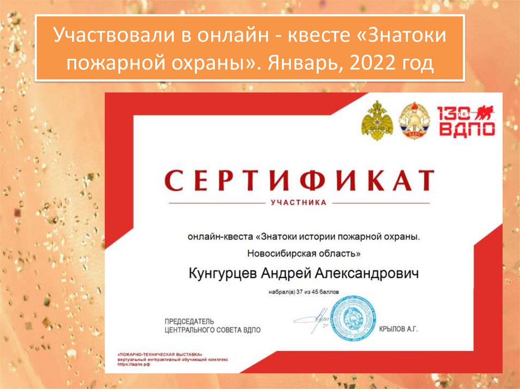 Участвовали в онлайн - квесте «Знатокипожарной охраны». Январь, 2022 год