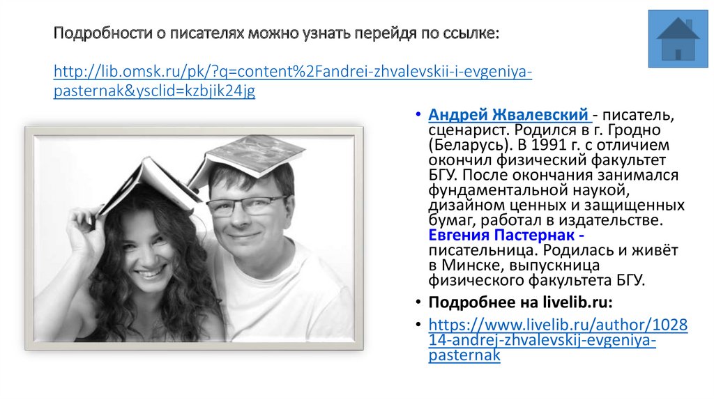 Подробности о писателях можно узнать перейдя по ссылке:http://lib.omsk.ru/pk/?q=content%2Fandrei-zhvalevskii-i-evgeniyapasternak&ysclid=kzbjik24jg