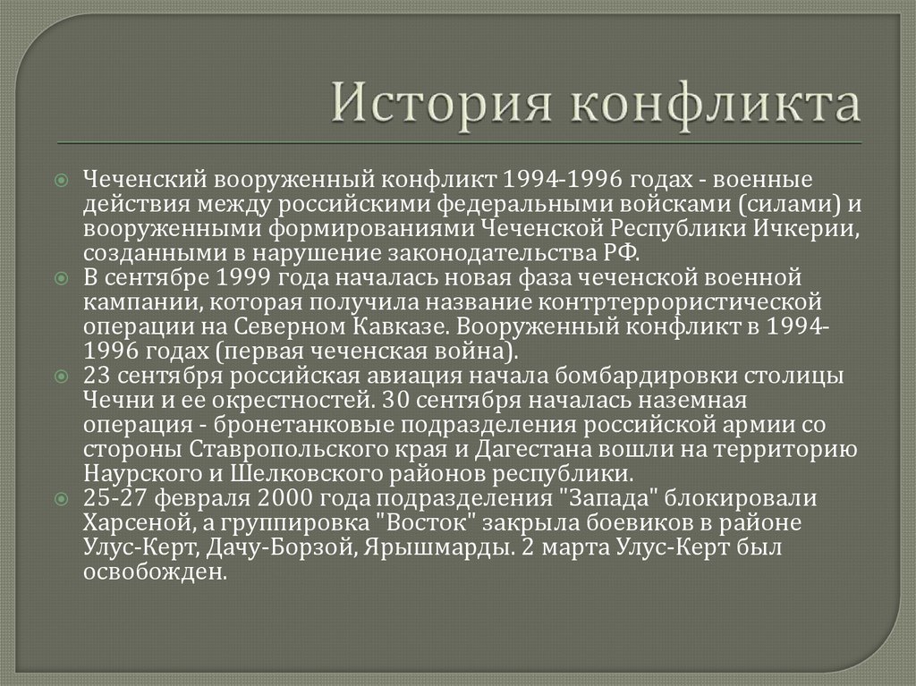 Чеченский вооруженный конфликт 1994-1996 годах - военныедействия между российскими федеральными войсками (силами) и