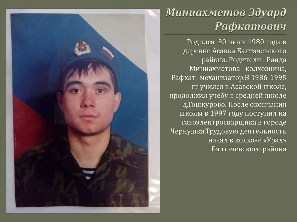 Миниахметов Эдуард Рафкатович- участник второй Чеченскойвойны