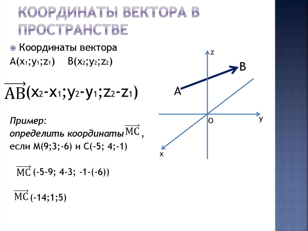 Координаты вектораА(х1;у1;z1) B(x2;y2;z2)