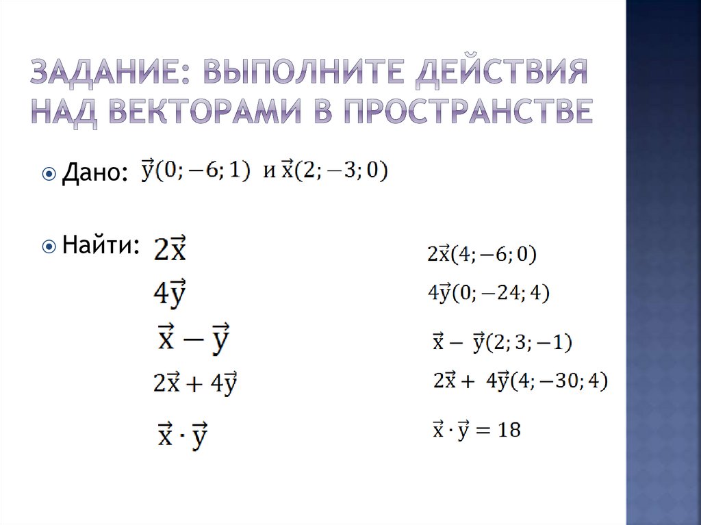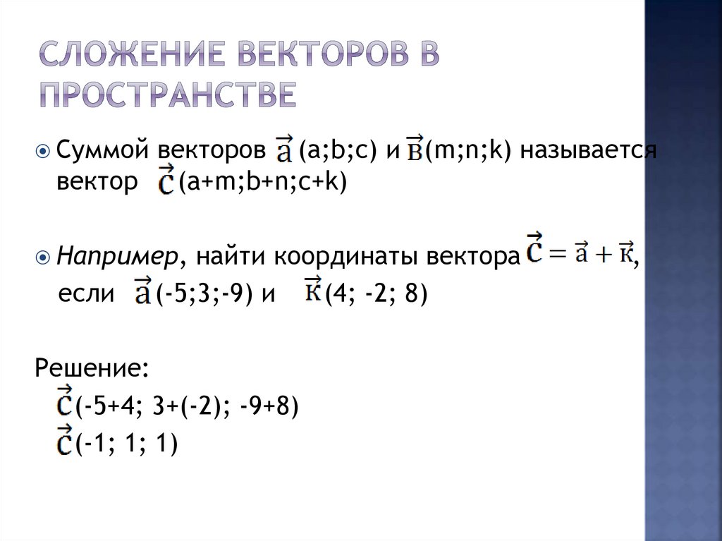 Действие над векторами в пространстве