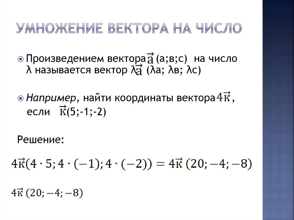 Произведениемвектора (а;в;с) на число