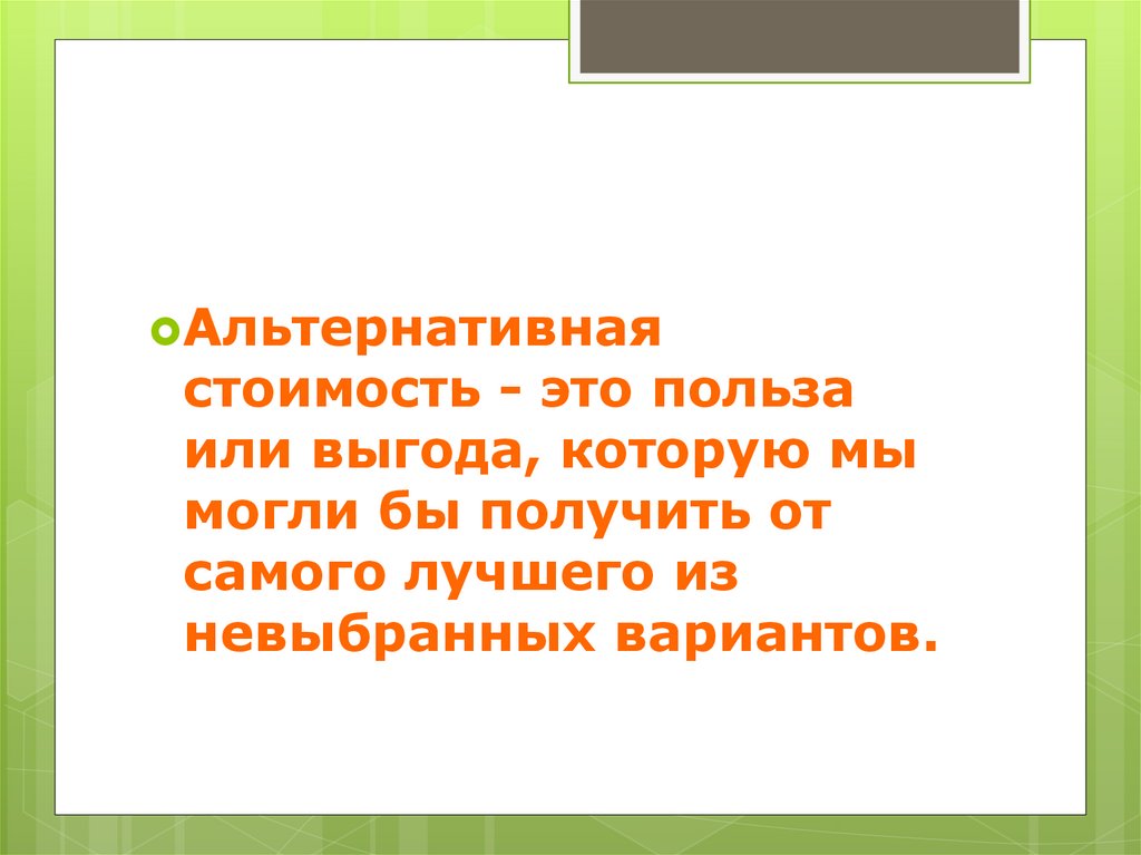 Альтернативнаястоимость - это польза