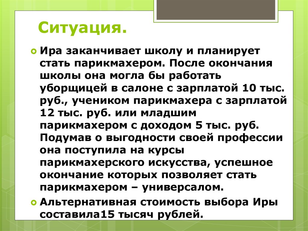Альтернативная стоимость выбора Иры