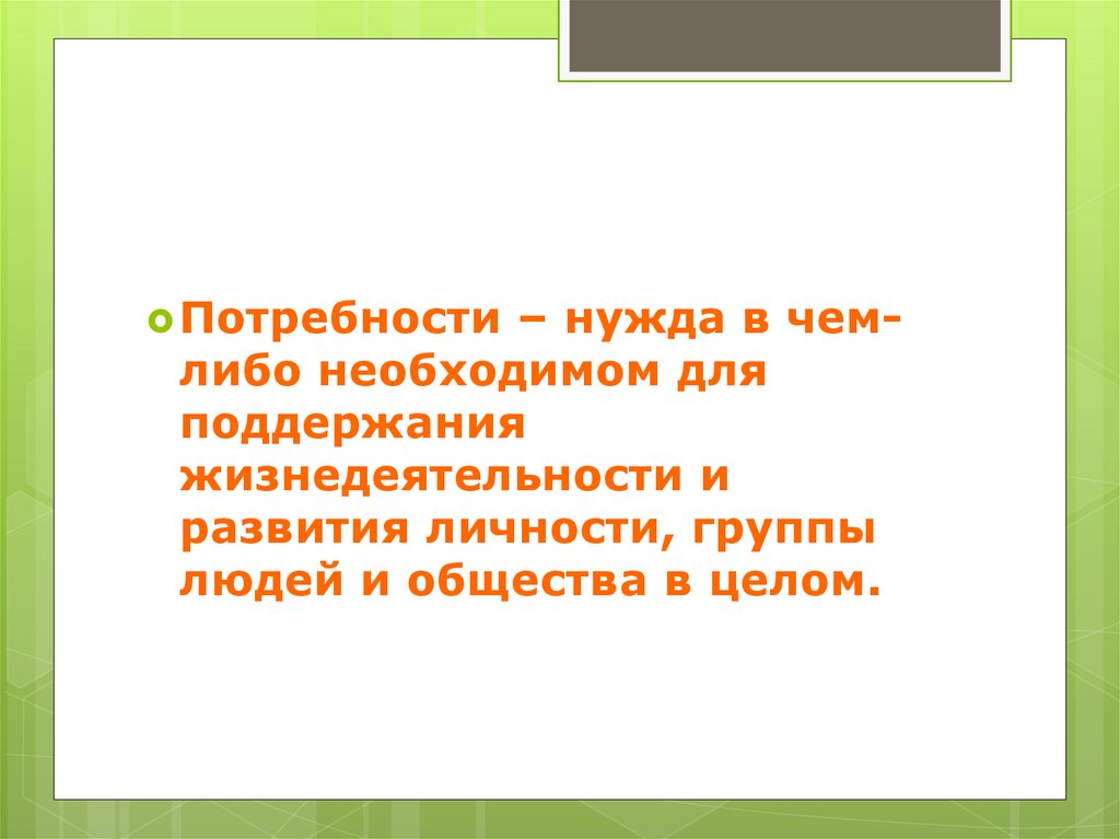 Потребности– нужда в чемлибо необходимом для