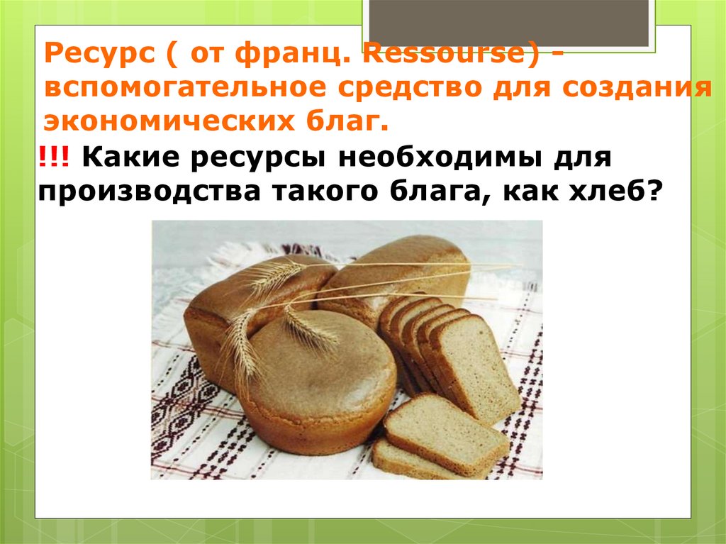 производства такого блага, как хлеб?