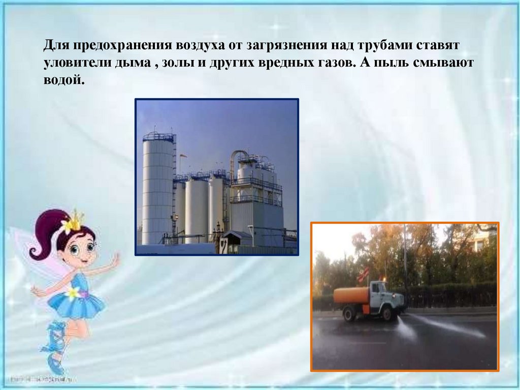 Для предохранения воздуха от загрязнения над трубами ставятуловители дыма , золы и других вредных газов. А пыль смывают