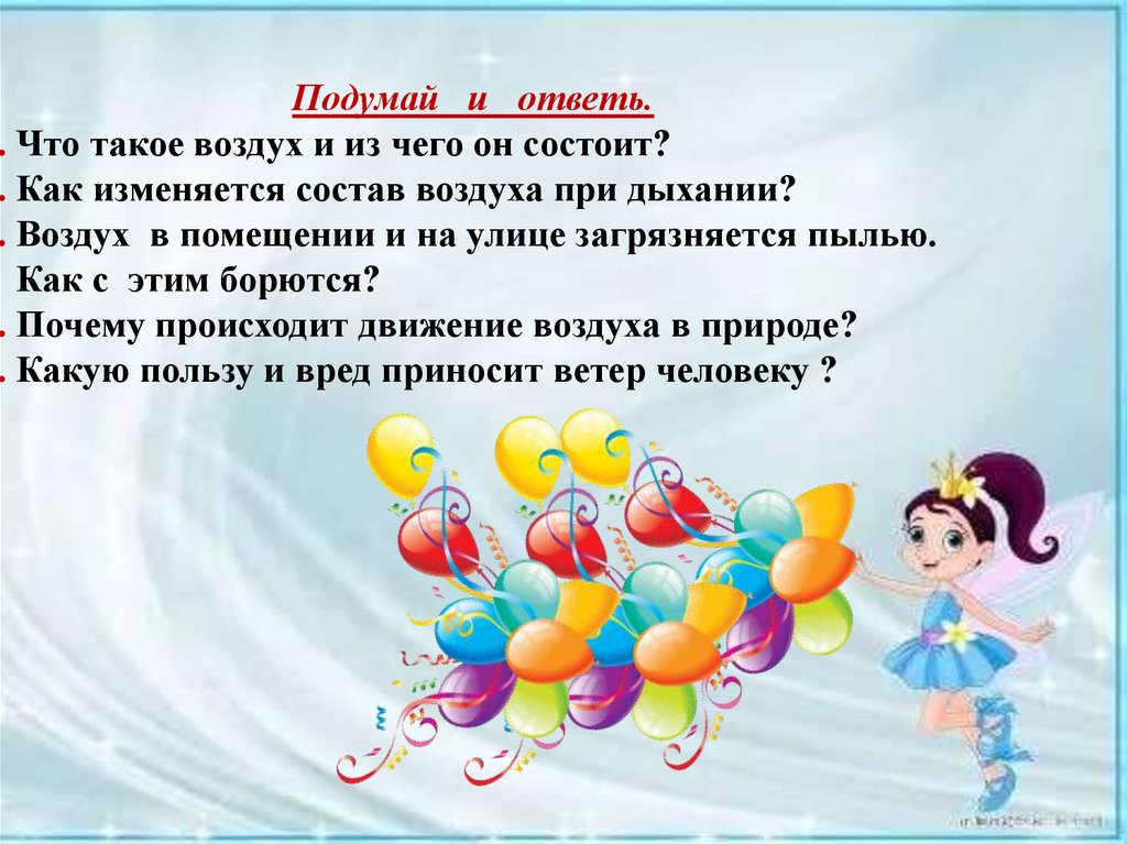 Подумай и ответь.. Что такое воздух и из чего он состоит?