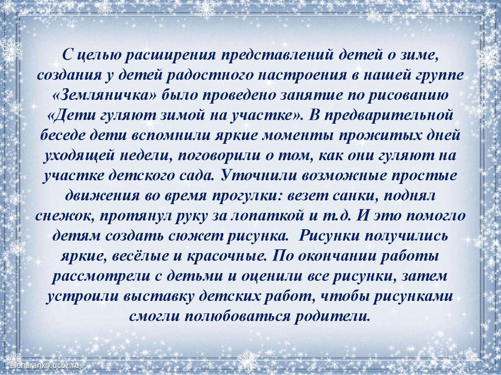 Рисование "Дети гуляют зимой на участке"