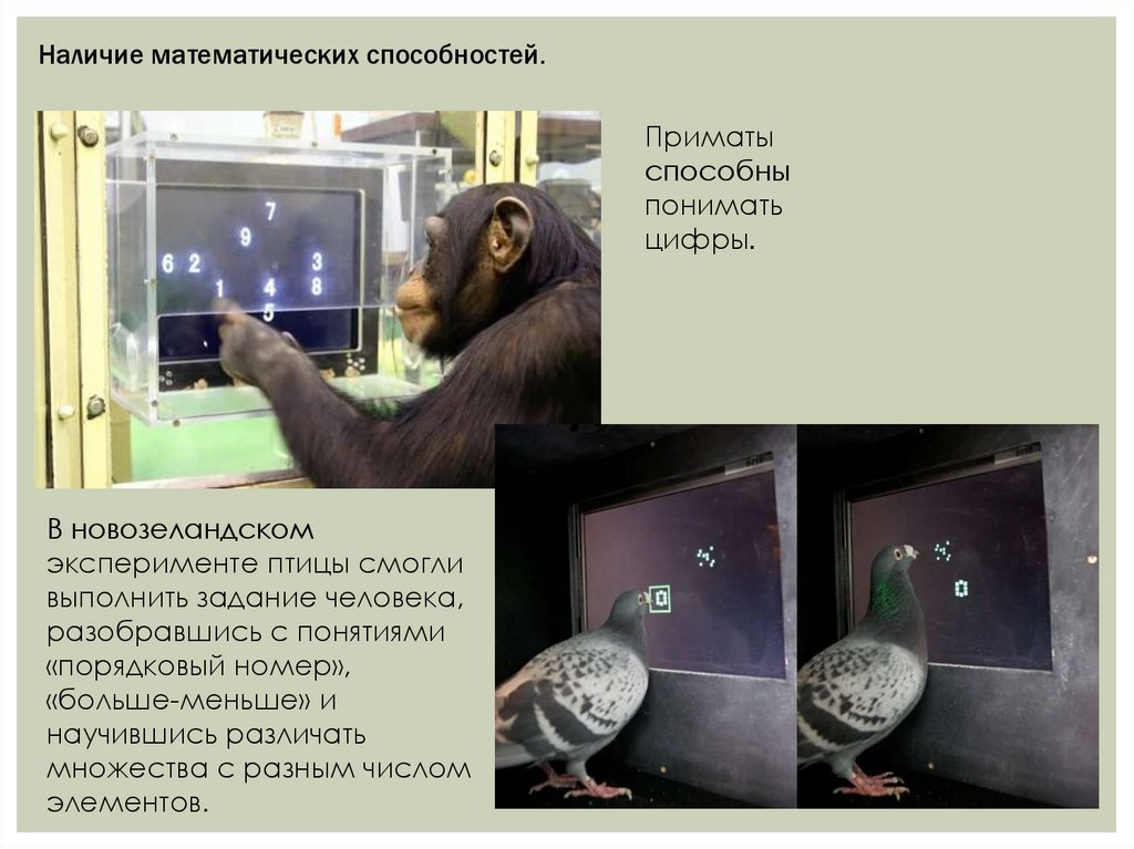Наличие математических способностей.Приматы