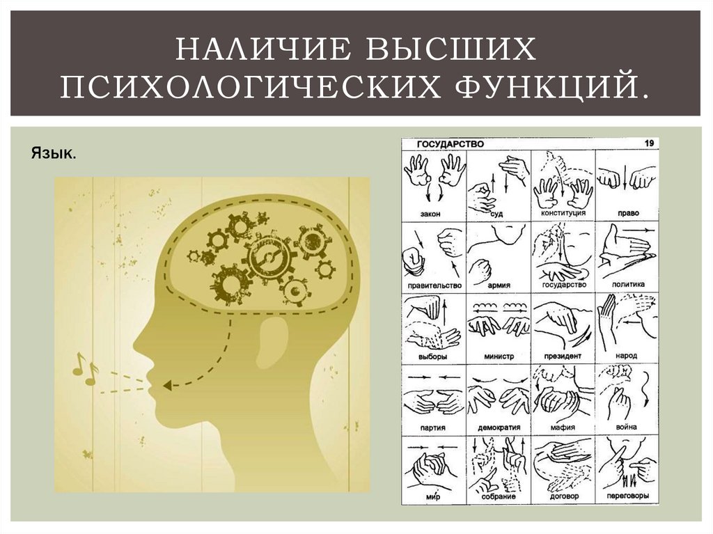 НАЛИЧИЕ ВЫСШИХПСИХОЛОГИЧЕСКИХ ФУНКЦИЙ.