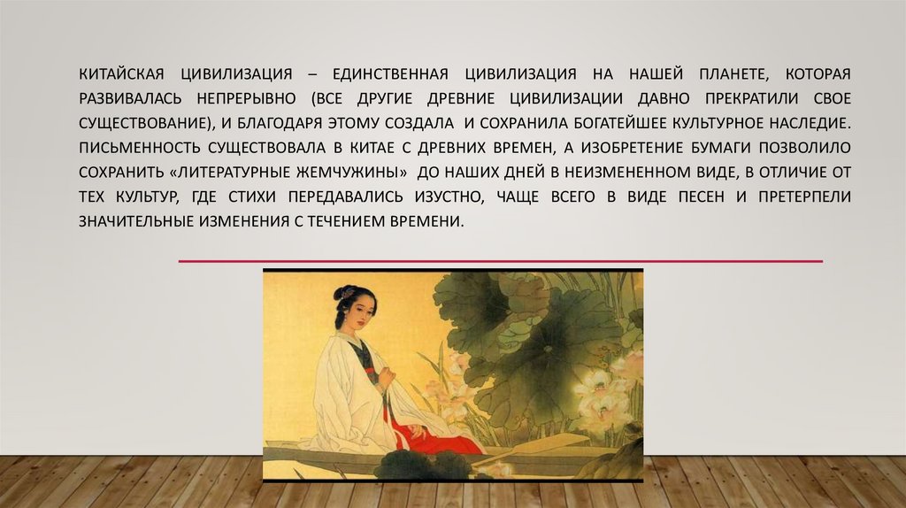 КИТАЙСКАЯ ЦИВИЛИЗАЦИЯ – ЕДИНСТВЕННАЯ ЦИВИЛИЗАЦИЯ НА НАШЕЙ ПЛАНЕТЕ, КОТОРАЯРАЗВИВАЛАСЬ НЕПРЕРЫВНО (ВСЕ ДРУГИЕ ДРЕВНИЕ ЦИВИЛИЗАЦИИ ДАВНО ПРЕКРАТИЛИ СВОЕ
