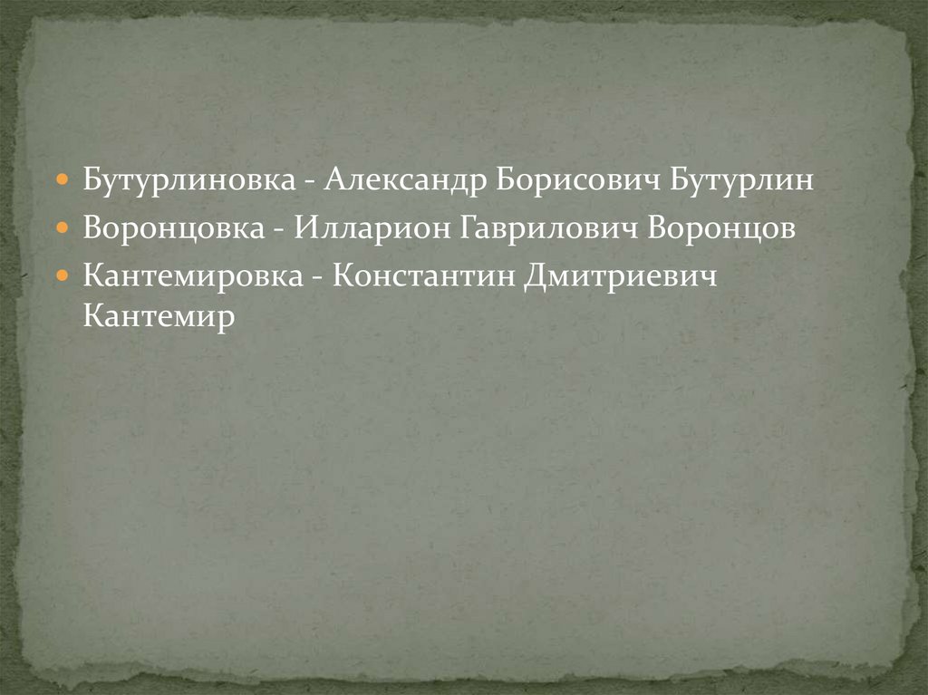 Бутурлиновка - Александр Борисович БутурлинВоронцовка - Илларион Гаврилович Воронцов