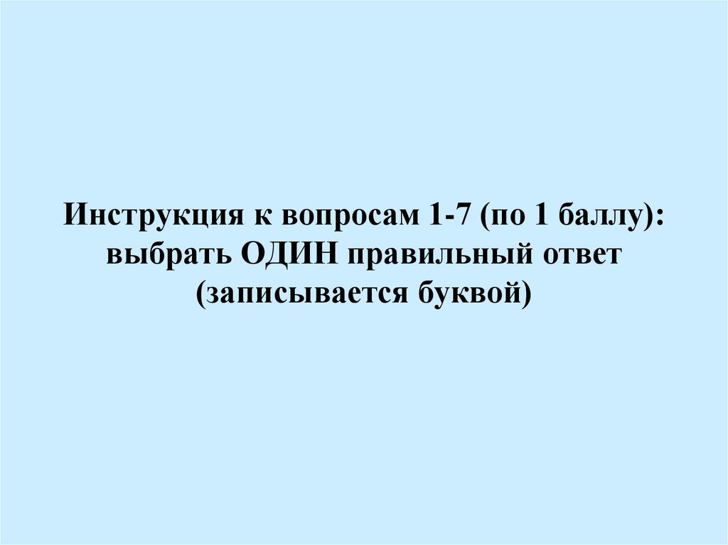 Инструкция к вопросам 1-7 (по 1 баллу):выбрать ОДИН правильный ответ
