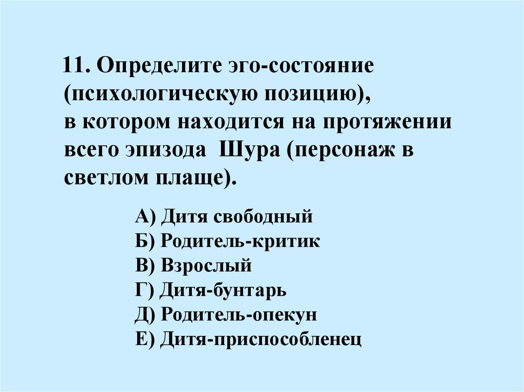 11. Определите эго-состояние(психологическую позицию),
