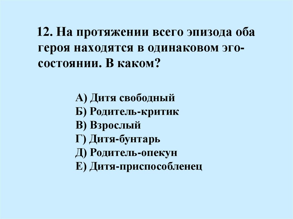 12. На протяжении всего эпизода обагероя находятся в одинаковом эгосостоянии. В каком?