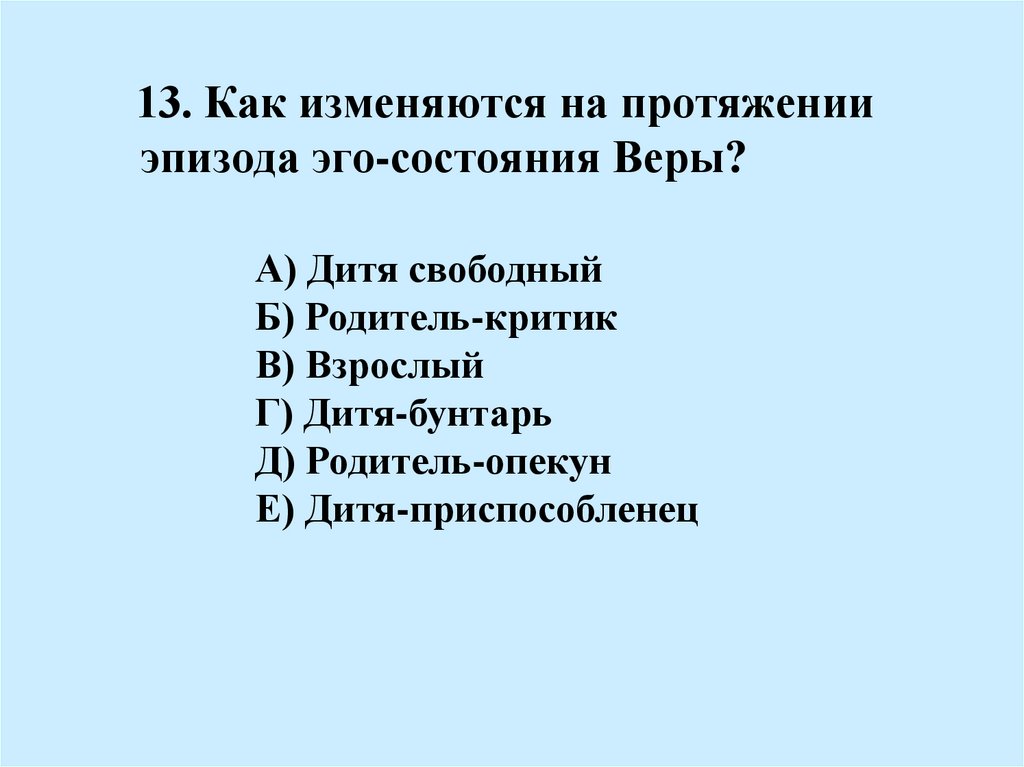 13. Как изменяются на протяженииэпизода эго-состояния Веры?