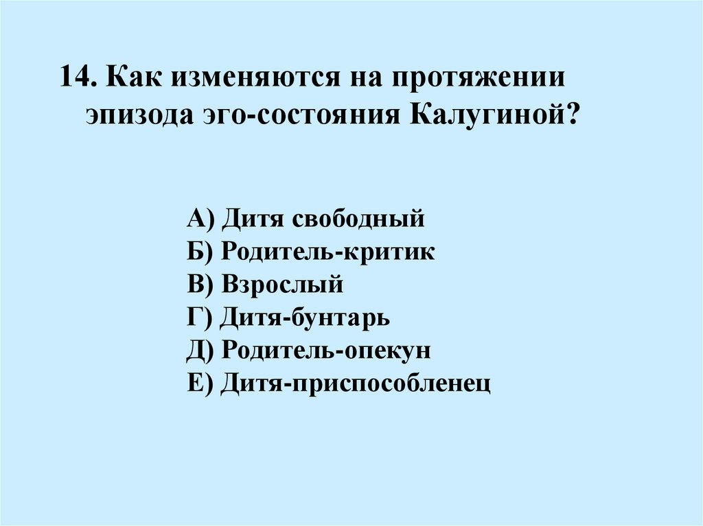 14. Как изменяются на протяженииэпизода эго-состояния Калугиной?