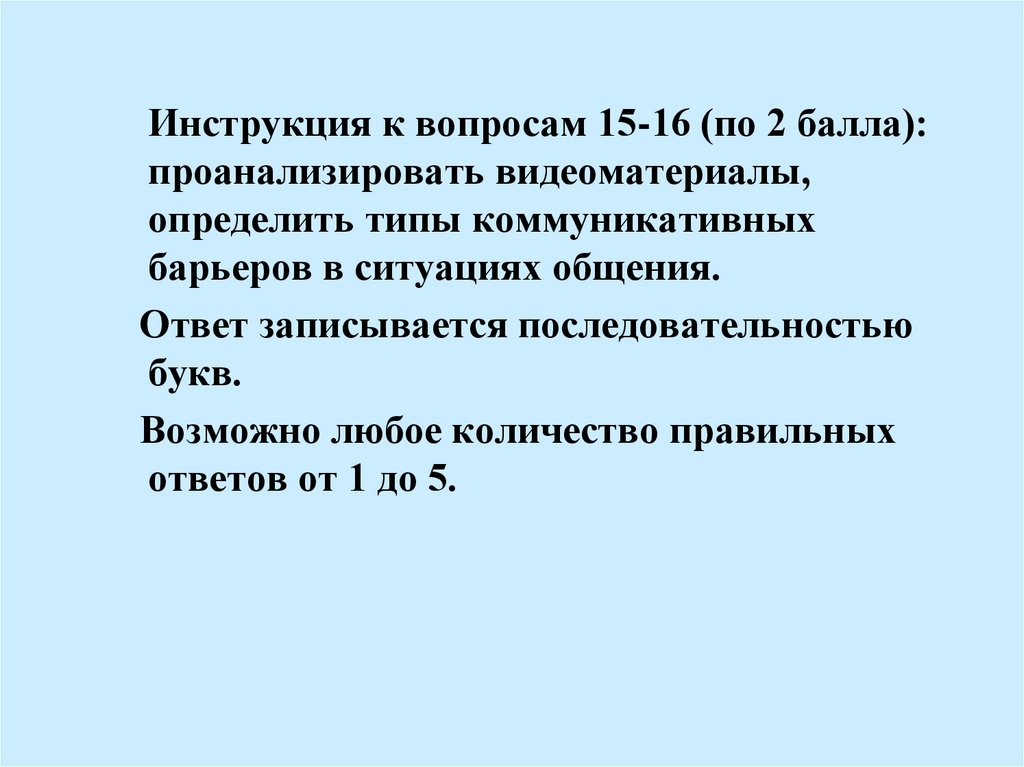 Инструкция к вопросам 15-16 (по 2 балла):проанализировать видеоматериалы,