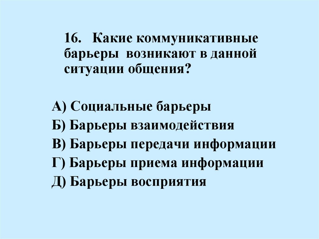 16. Какие коммуникативныебарьеры возникают в данной