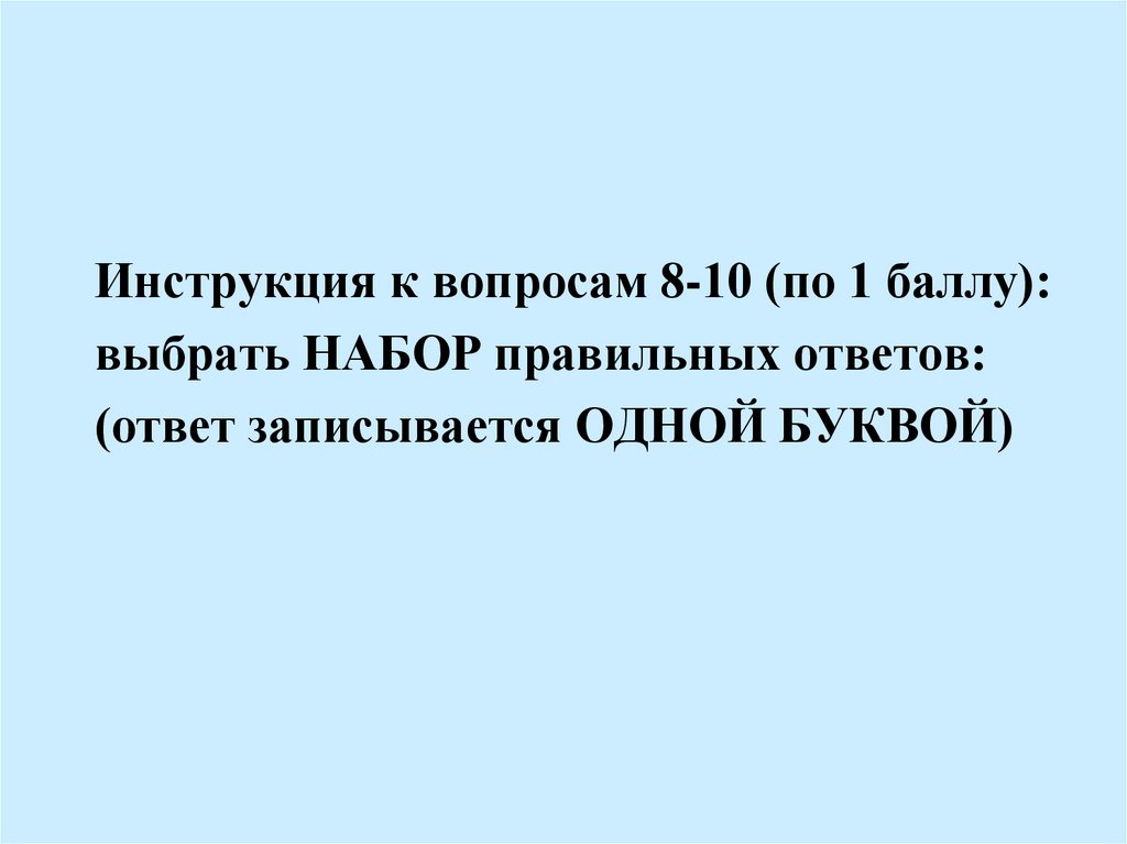 Инструкция к вопросам 8-10 (по 1 баллу):выбрать НАБОР правильных ответов:
