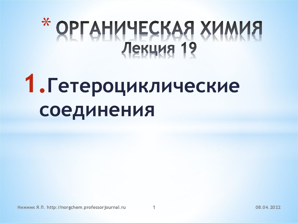 Гетероциклические соединения. Лекция 19